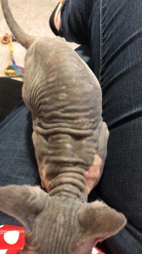 Picture Of Sphynx Cat Shows A Lot Of Skin Between Arm And Body Poc